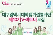 대구광역시는 대구광역시자원봉사센터와 함께 지역사회 혁신과 자원봉사 문화 확산을 이끌어갈 ‘제10기 V(Volunteer)-파트너 대학생 자원봉사단’ 참여자를 오는 3월 22일까지 모집한다. 올해는 UN이 지정한 ‘2026년 세계 자원봉사자의 해(International Volunteer Year 2026)’로, 대구시는 이번 10기 활동을 통해 자원봉사 활동의 전문성과 다양성을 한층 강화하고 글로벌 자원봉사 도시로서의 위상을 높일 계획이다. ‘V-파트너 대학생 자원봉사단’은 2017년부터 운영된 지역 대표 대학생 자원봉사 프로그램으로, 지금까지 4천여 명의 대학생들이 다양한 분야에서 봉사활동에 참여해 왔다. 대구·경북 소재 대학교 재·휴학생이면 누구나 지원할 수 있으며, 3인 이상의 팀 단위로 신청 가능하다. 선발된 단원들은 3월 27일 발대식을 시작으로 약 10개월간 대구 전역에서 본격적인 활동을 펼치게 된다. 주요 활동 분야는 ▲연합 활동(팀 연합활동, 영남권 자원봉사 리더 워크숍) ▲대규모 자원봉사활동(대구자원봉사박람회 등) ▲국제대회 활동(2026 대구세계마스터즈육상경기대회)