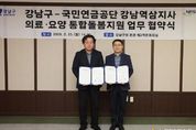 꿈이 모이는 도시, 미래를 그리는 강남구가 2월 23일 구청에서 국민연금공단 강남역삼지사와 ‘의료·요양 통합돌봄사업의 원활한 추진을 위한 업무협약(MOU)’을 체결했다. 이번 협약은 3월 27일 '의료·요양 등 지역 돌봄의 통합지원에 관한 법률' 전면 시행을 앞두고 지원체계를 강화하기 위해 마련됐다. 법 시행에 따라 통합돌봄 대상이 65세 이상 구민뿐 아니라 65세 미만 심한 장애인(지체, 뇌병변)까지 확대된다. 구는 65세 미만 심한 장애인(지체, 뇌병변)이 900여명에 이르는 만큼 대상자 발굴부터 조사, 서비스 연계까지 촘촘한 협력이 필요하다고 보고 있다. 국민연금공단 강남역삼지사는 장애인 통합돌봄 과정에서 통합지원 종합판정조사 등 핵심 현장 업무를 수행하는 전문기관이다. 통합돌봄은 대상자의 욕구와 돌봄 필요도를 정확히 조사·판정하는 과정이 서비스 연계의 출발점인 만큼, 구는 전문성과 조사 역량을 갖춘 국민연금공단과 협력해 사업의 실행력을 높이고 안정적으로 정착시킬 계획이다. 양 기관은 협약을 통해 ▲통합돌봄 대상자 발굴 및 지원체계 구축 ▲통합지원조사표에 대한 종합판정조사 실시 ▲개인별 지원계획 수립 지원