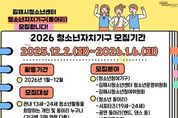 김해시청소년센터는 2026년 청소년자치기구(동아리)를 모집한다고 27일 밝혔다. 모집 분야는 ▲청소년정책에 주체적으로 참여할 수 있는 청소년참여위원회와 ▲김해시청소년센터의 운영에 대한 참여와 모니터링을 수행하는 청소년운영위원회 ▲공연, 비공연 등 3명 이상의 동아리 기능을 수행할 수 있는 단체 또는 개별 동아리이다. 자치(동아리) 활동에 관심이 있는 13세부터 24세 청소년은 누구나 지원할 수 있으며 12월 2일부터 2026년 1월 6일까지 신청 QR코드를 이용해 신청서를 제출하면 된다. 선정 발표는 내년 1월 14일 누리집 공지하고 개별 연락한다. 센터 관계자는 “다양한 활동과 관계 증진을 통한 건전한 가치관을 확립하고 자기계발 기회를 확대할 수 있도록 적극 지원하겠다”고 말했다. 보다 자세한 내용은 누리집을 참고하고 문의는 김해시청소년센터로 하면 된다. 한편 김해시청소년센터는 청소년들이 더 나은 환경에서 성장할 수 있도록 12월 말 시설 리모델링을 앞두고 있다.