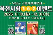 옥천군이 연말맞이 고향사랑기부제 활성화를 위해 특별 이벤트를 진행한다. 이번 이벤트는 옥천의 발전을 위해 마음을 보내주는 기부자들에게 감사를 전하고, 다른 기부제와 차별화되는 혜택을 홍보하는 등 더 많은 사람들이 제도 취지에 공감하며 참여할 수 있도록 마련됐다. '옥천사랑369 이벤트' 참여 방법은 11월 10일부터 12월 31일까지 고향사랑e음, 은행 어플(국민, 기업, 신한, 하나, 농협) 또는 전국 농협은행(방문)에서 옥천군 또는 지난 10월 모금을 개시한 특정사업 '옥천군 예체능 꿈나무 지원'에 10만 원 이상 기부하고 답례품 선택까지 완료하면 된다. 기간이 종료되면 예산 소진 시까지 30, 60, 90, 120, 150...번째 답례품 주문자에게는 기본혜택(세액공제, 답례품) 외 추가 혜택으로 본인이 선택한 답례품을 하나 더 제공한다. 기부자가 늘어날수록 추가 혜택 수혜자도 확대되기때문에 연말 기부 활성화에 기여할 것으로 전망된다. 고향사랑기부제는 세액공제 혜택과 함께 지역 특산품도 답례로 받을 수 있어 지역도 돕고 개인에게도 이득이 되는 제도다. 특히 올해부터는