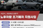 충남 서산시가 청정한 대기환경을 조성하기 위해 2026년 노후차량 조기폐차 지원사업을 추진한다고 밝혔다. 해당 사업은 운행할 수 있는 노후차량을 조기에 폐차하는 경우 보조금을 지원하는 사업으로, 시는 18억 원을 투입해 상반기와 하반기 총 2회 신청자를 접수할 계획이다. 지원 대상은 4등급 경유자동차와 5등급 자동차, 2009년 8월 31일 이전 배출허용기준을 적용해 제작된 도로용 3종 건설기계, 2004년 12월 31일 이전 배출허용기준으로 제작된 지게차·굴착기 등이다. 단, 보조금을 지원받아 배출가스저감장치를 부착한 5등급 경유차는 대상에서 제외된다. 지원 조건은 신청일 기준 차량 사용본거지가 대기관리권역에 6개월 이상 연속하여 등록돼 있어야 한다. 또한, 최종 사용본거지가 서산시인 차량이면서 차량 관능검사에서 적합 판정을 받고 차량 소유자에게 환경개선부담금, 지방세 등의 체납이 없어야 한다. 차량 소유자는 시청 제2청사 2동 2층 회의실에 방문하거나, 우편(서산시 고운로 177, 기후환경대기과) 또는 자동차 배출가스 통합 누리집을 통해 신청하면 된다. 상반