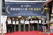충북 단양군은 지난 24일 단양구경시장에서 ‘증발냉방(쿨링포그) 시스템’ 준공 기념 시연회를 개최했다고 밝혔다. 증발냉방 시스템은 정수 처리된 물을 미세한 안개 형태로 분사해 주변 온도를 3∼5도 낮추는 장치로, 피부나 옷이 젖지 않아 이용 편의성이 높다. 이를 통해 시장을 찾는 이용객과 상인의 온열질환을 예방하고, 식품 신선도 유지에도 도움이 된다. 이번에 단양구경시장에 설치된 시스템은 환경부 ‘2025년 기후위기 취약계층 지원 공모사업’에 선정되며 추진된 사업으로, 국비를 포함한 총 6억 원의 예산이 투입됐다. 아케이드 내 450m 구간에 공기순환용 팬 69개와 분무 노즐 8개소를 설치해 시장 전반의 냉방 효과를 높였다. 이날 시연회에는 시장 상인 등 30여 명이 참석해 냉방 시스템의 작동 상태를 직접 확인하고, 향후 운영 개선을 위한 의견과 애로사항을 청취하는 등 소통의 시간을 가졌다. 시연회와 함께 전통시장 내 ‘탄소중립 캠페인’도 병행해 장바구니 사용 권장과 에너지 절약 생활수칙 홍보, 탄소중립 실천 홍보물 배부 등 다양한 활동을 펼치며 군민의 참여를 독려했다. &