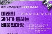 춘천교육문화관은 12월 3일부터 12월 6일까지 ‘미래와 과거가 통하는 배움한마당’이라는 주제로 문화활동 성과공유 행사를 운영한다. 이번 행사는 올해 학생, 학부모, 지역주민을 대상으로 운영됐던 문화활동강좌, 사회통합 강좌, 문화활동 동아리 등 우리 교육문화관에서 운영됐던 문화활동 전반에 대해 공감하고 소통하는 기회의 장을 마련하고자 기획됐다. 특히 최신 문화트랜드 ‘K-컬처’와 ‘디지털시대’에 미래와 과거가 공존하는 배움의 장으로 수강생 작품 전시, 문화 공연, 체험활동 행사로 구성했다. 작품전시 행사는 12월 3일부터 12월 6일까지 춘천교육문화관 전시장에서 문화활동 강좌 수강생 및 동아리 회원의 작품 200점이 전시된다. 체험활동 행사는 12월 6일 오전 10시부터 오후 5시까지 ‘마음을 성장시키는 감성체험존’ 2개, ‘디지털 시대 창의력을 키우는 과학체험존’ 4개, ‘K-컬처와 함께하는 역사체험존’ 4개의 체험활동 부스 운영으로 진행된다. 문화 공연은 12월 6일 오후 1시부터 3시까지 김인수 마술사가 ‘시작(see 作)’이라는 주제의 마술 공연을 춘천교육문화관 공연장에서 선보인