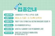 인천광역시 계양구는 5월 1일부터 14일까지 지역 내 동물병원 20개소에서 반려견을 대상으로 ‘2026년 춘계 광견병 예방접종’을 실시한다고 밝혔다. 광견병은 감염된 동물에게 물렸을 때 사람에게도 전파될 수 있는 인수공통전염병으로, 가정에서 기르는 생후 3개월 이상의 개는 반드시 예방접종을 받아야 한다. 접종을 희망하는 주민은 백신이 조기에 소진될 수 있는 만큼, 동물병원 방문 전 전화로 잔여 수량을 확인해야 한다. 접종 시 보호자는 비용 5,000원을 부담하며, 방문 시 수의사와 충분한 상담을 거쳐 접종을 진행하는 것이 바람직하다. 구 관계자는 “광견병은 예방이 무엇보다 중요한 질병”이라며 “반려동물과 주민 모두의 안전을 위해 정해진 기간 내 예방접종에 적극 참여해 주시길 바란다.”라고 말했다. 기타 자세한 사항은 계양구청 지역경제과 동물보호팀으로 문의하면 된다.