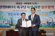 충북 진천군은 군청 소회의실에서 HR레포츠 주식회사(대표 신호룡)와 ‘진천 HR FC 축구단 육성 및 지원을 위한 업무협약’을 체결했다고 24일 밝혔다. 이번 협약은 2026년 대한축구협회 K4 리그 참가를 앞두고, 진천 HR FC의 안정적인 운영 기반을 마련하고, 지역 스포츠 발전을 위한 협력 체계를 구축하기 위해 추진됐다. 협약식에는 송기섭 진천군수와 HR레포츠(주) 신호룡 대표, 김화영 진천군 체육회장, 김중기 진천군 축구협회장 등 관계자들이 참석했다. 협약의 주요 내용은 △축구단 운영과 발전 지원 △유소년 축구 육성과 저변 확대 △지역사회 공헌 활동 △스포츠마케팅을 통한 지역 홍보 강화 등이다. 군은 이번 협약을 통해 지역 스포츠 브랜드 가치 제고, 군민 스포츠 관람 문화 정착, 유소년·생활 체육 연계 강화 등 다양한 효과를 기대하고 있다. 앞으로 군은 행정적·재정적 지원과 경기장 관련 시설 활용 지원 등에 협력하고, HR 레포츠는 선수단 운영, 스포츠마케팅, 유소년 프로그램 운영 등을 총괄하며 지역 축구 문화 확산에 힘쓸 예정이다. 송기섭 군수는 “진천 HR F