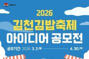 김천시는 국민과 함께 만들어가는 참여형 축제를 위해 ‘2026 김천김밥축제 아이디어 공모전’을 개최한다. 이번 공모전은 김천김밥축제를 더욱 참신하고 경쟁력 있는 축제로 발전시키기 위해 국민의 창의적인 아이디어를 발굴하고, 우수 콘텐츠를 실제 축제 프로그램에 반영하고자 마련됐다. 공모 기간은 3월 3일부터 4월 30일까지이며, 대한민국 국민 누구나 참여할 수 있다. 공모 주제는‘김밥’을 소재로 한 축제콘텐츠 아이디어로, ▲체험·참여 프로그램 ▲이색 테마존 및 공간연출 ▲어린이·가족·MZ세대·외국인 대상 맞춤형 콘텐츠 ▲지역 관광자원과 연계한 프로그램 ▲캐릭터 굿즈 및 브랜드 확장 등 다양한 분야에서 자유롭게 제안할 수 있다. 접수된 아이디어는 전문가 심사(80%)와 일반인 온라인 심사(20%)를 거쳐 총 10개 아이디어를 선정하며, 수상자에게는 상장과 함께 최우수상 100만 원 등 총 510만 원 규모의 시상금이 수여된다. 선정된 아이디어는 검토를 거쳐 실제 축제 현장에 반영될 예정이다. 김천시는 이번 공모전을 통해 국민이 직접 참여하고 아이디어를 제안하는 개방형 축제 모델을 구축하고,