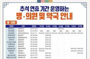 횡성군은 2025년 추석 연휴를 맞아 군민들의 건강과 안전을 보호하기 위해 10월 3일부터 10월 9일까지 7일간 특별대응기간을 설정하고, 응급진료체계를 강화한다고 30일 밝혔다. 연휴 기간 중 응급환자 진료 및 다수 사상자 발생 대비 횡성군보건소에 ‘응급진료대책 상황실’을 설치하고 당번 의료기관 및 약국 민원 안내, 응급의료기관, 문 여는 병·의원 및 약국 운영현황 점검 및 일일보고, 대규모 재난 발생 시 신속한 응급진료체계를 위한 비상연락 유지 등의 임무를 수행한다. 또한, 추석 당일인 10월 6일에는 횡성군보건소에서 오전 9시부터 오후 6시까지 일반진료를 실시하여 군민들의 의료서비스 불편을 최소화할 방침이다. 문 여는 병·의원 및 약국 현황을 확인하는 방법은 다음과 같다. - 전화 문의: 국번 없이 119 또는 129 또는 120 - 어플리케이션 사용: ‘응급똑똑’ 검색 - 인터넷 검색: ‘응급의료포털 E-Gen’ 검색 - 홈페이지 방문: 횡성군청 공식 홈페이지 김영대 횡성군보건소장은 “추석 연휴 기간 응급진료체계 구축을 통해 군민이 안전하고