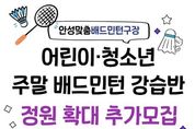 안성시시설관리공단은 안성 시민 생활체육 활성화를 위해 현재 운영 중인 주말 어린이・청소년 배드민턴 강습반 정원을 확대하고 추가 수강생을 모집한다고 밝혔다. 이번 주말 어린이・청소년 배드민턴 강습반은 개설 이후 학부모와 수강생들의 높은 관심 속에 연일 정원이 마감될 정도로 큰 호응을 얻고 있다. 특히 주말을 활용해 어린이와 청소년들이 체계적으로 생활 체육을 접할 수 있다는 점에서 학부모들의 만족도가 높은 프로그램으로 자리 잡고 있다. 공단은 이러한 시민 수요를 적극 반영하기 위해 강습반 정원을 기존보다 확대하고, 오는 3월 23일 오전 9시부터 3월 31일 오후 10시까지 초등학생부터 고등학생까지의 어린이·청소년을 대상으로 선착순 10명을 추가 모집한다. 신청은 실내체육관 사무실에 전화로 문의한 뒤 방문 접수로 진행될 예정이다. 이정찬 이사장은 “시민들의 높은 관심에 부응하기 위해 앞으로도 누구나 쉽게 참여할 수 있는 생활체육 환경을 만들어 가겠다”고 전했다. 현재 안성시시설관리공단에서는 시민들의 건강증진을 위하여 주말 강습반 외 매주 2회(화,목) 오전‧오후‧저녁‧시니어 배드민턴 강습반을 안성맞춤배