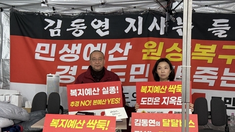 경기도의회 보건복지위원회 소속 이병길 의원(국민의힘, 남양주7)이 27일 경기도의 내년도 예산 편성을 두고 "도민의 삶을 벼랑 끝으로 밀어붙인 폭거"라며 강도 높은 비판에 나섰다. 이날 이병길 의원은 경기도의회 로비에서 단식투쟁 중인 백현종 대표의원을 방문해 경기도의 예산 편성과 도정 운영 전반에 대해 "정치 논리에 희생된 도민의 삶을 지키기 위해 마지막까지 싸우겠다"고 밝혔다. 필수 복지예산 무자비한 삭감에 "도민 생존권 위협"이 의원은 "경기도가 어르신 돌봕, 아동·청소년 돌봄, 취약계층 지원 등 가장 기본적이고 필수적인 복지예산을 무자비하게 잘라냈다"며 "지금 예산이 삭감된 곳은 '정치용' 사업이 아니라 어르신의 밥상, 아이들의 돌봄, 장애인의 생존권"이라고 강조했다. 그는 특히 "이재명표 예산만 늘리고 필수 복지예산은 축소하는 예산 편성은 도민의 삶을 짓밟는 폭력"이라며 "복지예산은 도민의 식탁·돌봄·생존권과 직결되는 만큼, 이를 정치적 이유로 자르는 것은 결코 용납할 수 없다"고 목소리를 높였다. 단식농성장에는 "복지예산 싹둑! 도민은 지옥문!", "민생예산 원상복구하라!", "경기도민 다 죽는다!" 등이 적힌 피켓이 내걸려 있었으며, 이병길 의원은