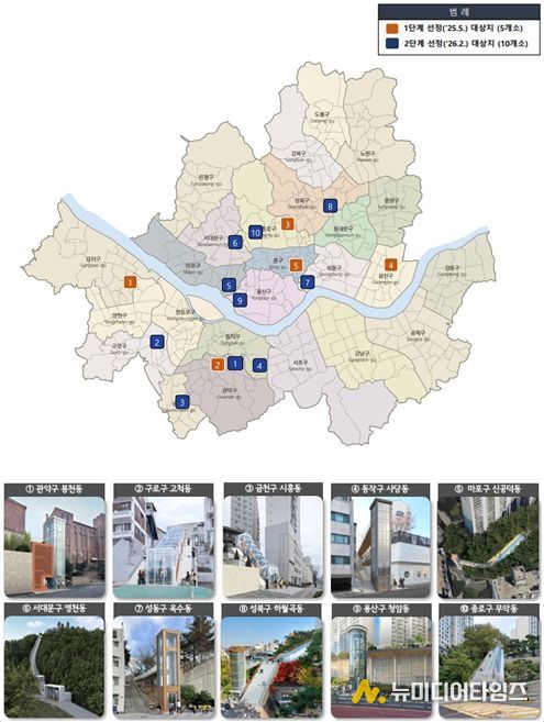 고지대 이동약자 편의시설 설치 사업은 주거지와 대중교통·공원·생활편의시설을 안전하고 편리하게 연결하기 위해 지역 특성에 맞춰 엘리베이터·모노레일 등 생활밀착형 이동시설을 설치하는 사업으로, 시는 지난해 5월 1단계 5곳(광진구 중곡동, 강서구 화곡동, 관악구 봉천동, 종로구 숭인동, 중구 신당동)을 우선 대상지로 선정한 바 있다.