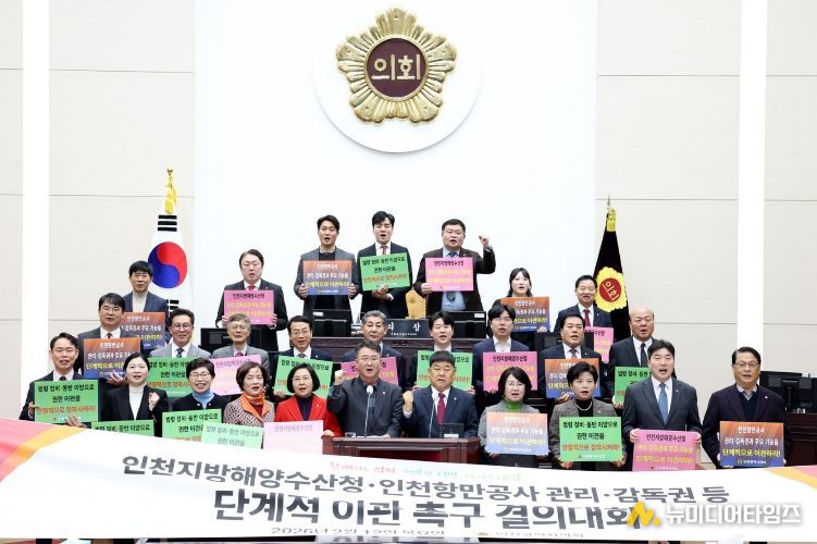 인천광역시의회가 정부를 향해 “인천지방해양수산청과 인천항만공사의 관리·감독권 등 주요 기능을 인천광역시로 단계적으로 이관하라”고 촉구했다.