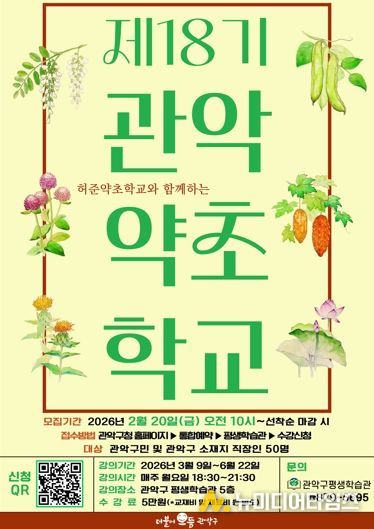 이에 관악구가 오는 3월 9일부터 6월 22일까지 ‘제18기 관악약초학교’를 운영해 주민의 건강한 일상을 만드는 유익한 약초 지식을 전한다는 방침이다.