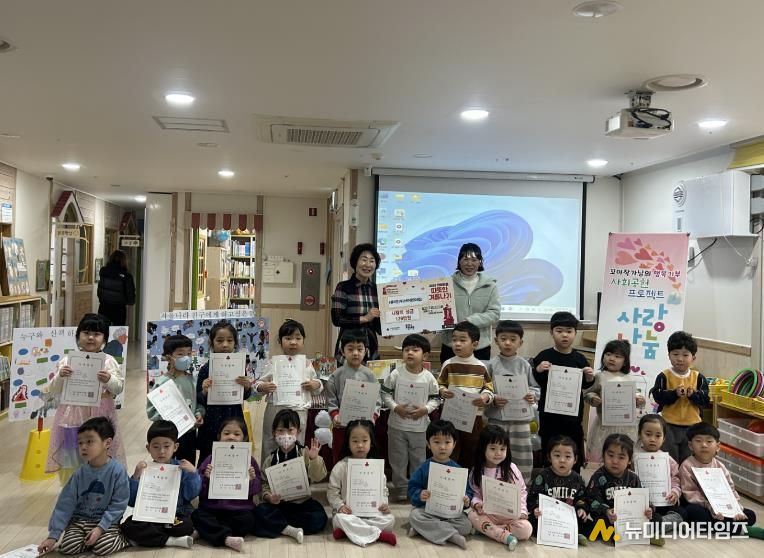이번 기부는 어린이집에서 매달 1회 진행해 온 ‘꼬마 작가 활동’에서 출발했다. 읽기에서 멈추지 않고, 읽은 것을 자기 언어로 다시 써보는 시간이다. 같은 그림을 보고도 아이들마다 이야기는 달랐다. 어떤 아이는 가족의 하루를, 어떤 아이는 상상의 동물과 우주를 꺼내 놓았다. 서툴지만 또렷한 문장과 그림이 쌓여 한 권의 책이 됐고, 아이들에게는 ‘내 이야기가 책이 된다’는 성취감이 생겼다.