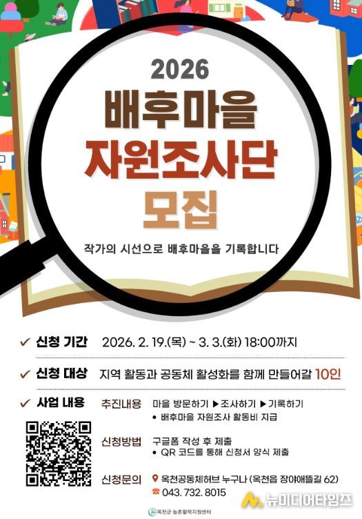 옥천군이 2026년 시군역량강화사업의 일환으로 ‘2026년 배후마을 자원조사’에 참여할 마을과 조사단을 모집한다.