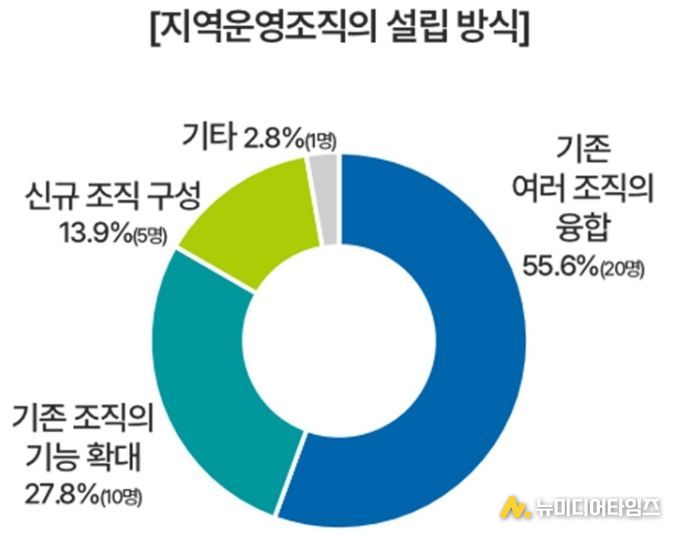 연구진은 “지역운영조직 설립 방식과 관련해 응답자의 55.6%는 ‘기존 여러 조직이 융합하는 형태’가 가장 적합하다고 답했다”며 “이를 반영해 ▲확장형(기존 조직 기능 확대) ▲융합형(기존 2개 조직 통합) ▲협의체형(여러 조직의 네트워크형 구성) 등 3가지 유형을 제안한다”고 말했다.