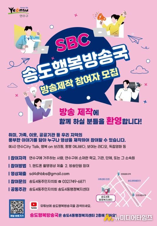 송도행복방송국(공동위원장 송도4동장 양만상, 송도4동 주민자치회장 양경엽)이 2026년 방송 프로그램 제작에 참여할 연수구 주민을 모집한다.