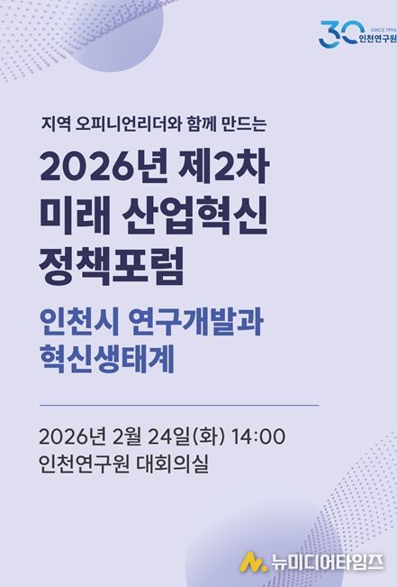 인천연구원은 2026년 2월 24일 오후 2시, 인천연구원 대회의실에서 '제2차 인천 미래 산업혁신 정책포럼'을 개최한다.