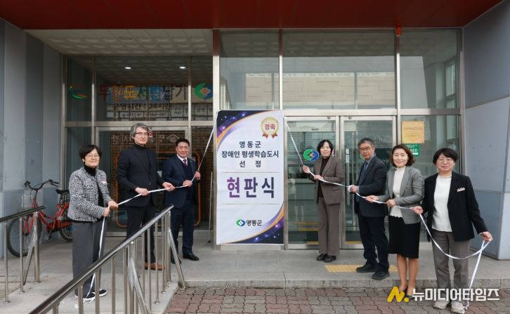 충북 영동군은 23일 오후 평생학습관(레인보우영동도서관)에서 ‘2025년 장애인 평생학습도시 지정’ 현판식을 개최했다.