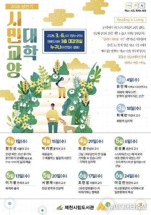 제천시립도서관은 시민이 일상에서 인문학을 쉽게 접하고 삶을 성찰할 수 있도록'2026 상반기 시민교양대학'을 운영한다.