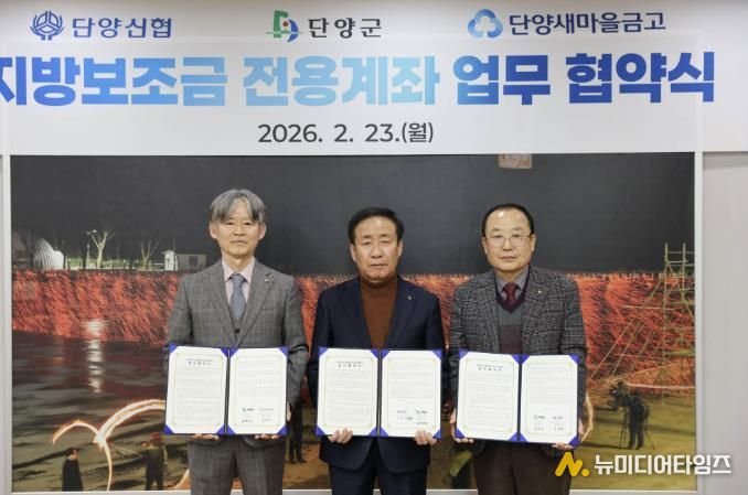 군은 지난 23일 단양군청 군수실에서 단양신협, 단양새마을금고와 ‘지방보조금 전용계좌 추가 개설·운영’을 위한 업무협약을 체결했다고 밝혔다.