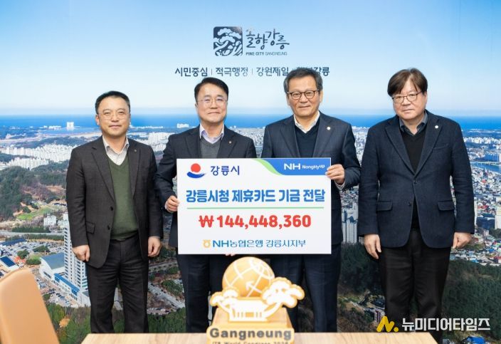 이날 전달식에는 2025년도 농협 제휴카드 사용에 따른 적립금 1억 4,444만 원을 전달받을 예정이며, 이는 지난해 강릉시가 사용한 각종 법인카드, 공무원 복지카드, 민간단체 보조금 카드 등의 이용 금액에서 발생한 0.1~1.0%의 포인트 적립금이다.