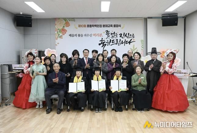 홍성군은 지난 24일, 3년간의 초등학력 인정 문해교육 프로그램을 이수한 학습자 4명의 초등학교 졸업식을 가졌다고 밝혔다.