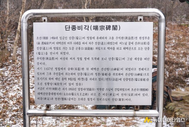 태백산 망경대 뒤쪽 능선에 있는 단종비각은 조선 제6대 임금 단종(재위 1452~1457)의 넋을 기리기 위해 세워진 비각이다.