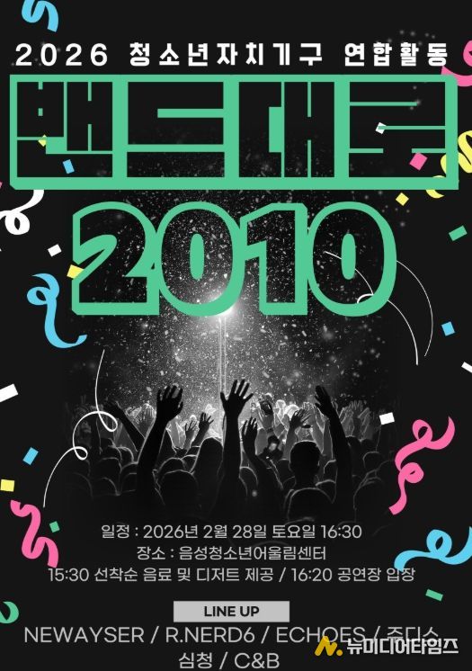 음성군은 이달 28일 음성청소년어울림센터에서 2026년 청소년자치기구 연합활동 ‘밴드대로 2010’을 개최한다고 밝혔다.