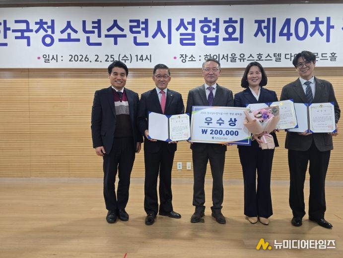 예산군청소년복지재단 소속 예산군청소년미래센터가 지난 25일 서울시립하이서울유스호스텔에서 개최된 제40차 한국청소년수련시설협회 정기총회에서 ‘2026 모범청소년시설’로 선정되어 한국청소년수련시설협회장 표창을 수상했다.