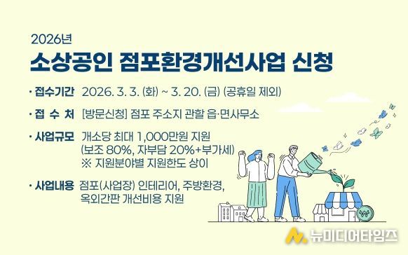충북 영동군은 어려운 경제 여건 속에서 경영에 어려움을 겪는 관내 소상공인의 사업 경쟁력 확보와 자생력 강화를 위해 '2026년 소상공인 점포환경개선사업'을 시행한다고 밝혔다.