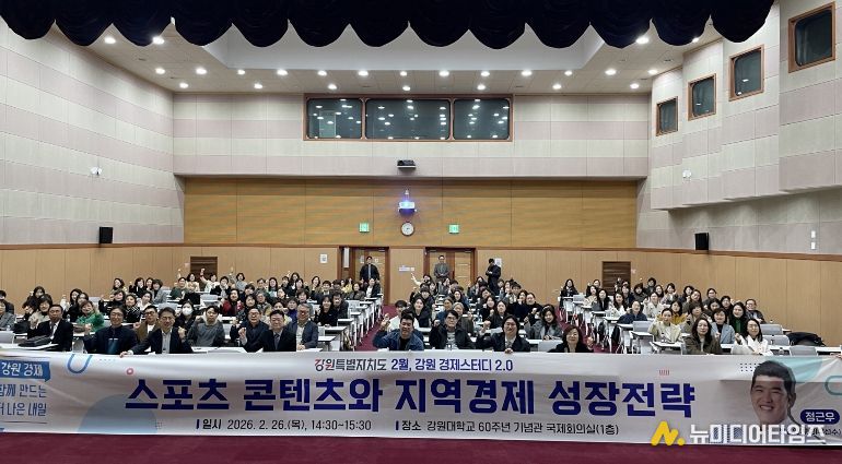 강원특별자치도는 2월 26일 강원대학교 60주년기념관 국제회의실에서 '스포츠 콘텐츠와 지역경제 성장 전략'을 주제로 2월 강원경제스터디를 개최했다.