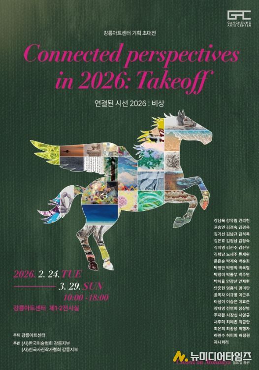 강릉아트센터는 24일 기획 초대전 《연결된 시선 2026: 비상》을 개막하고, 3월 29일까지 제1·2전시실에서 전시를 진행한다.