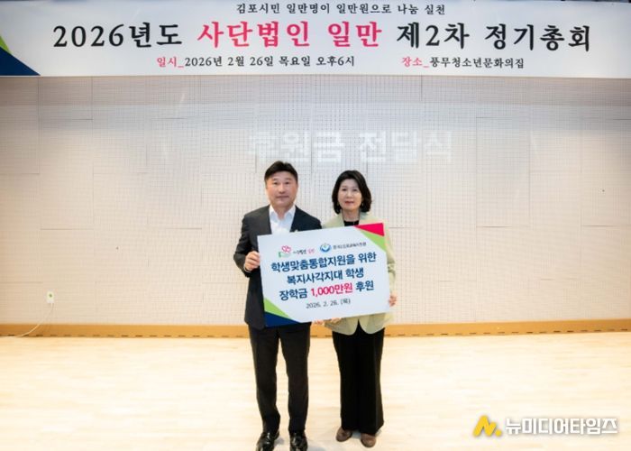 경기도김포교육지원청은 2월 26일 풍무청소년문화의집에서 열린 일만장학회 정기총회에서 학생맞춤통합지원을 위한 장학금 기탁식을 가졌다.