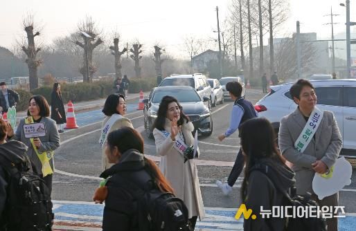 이번 캠페인에는 당진교육지원청 직원들이 참여해 이른 등교 시간부터 교문과 학교 주변에서 학생들을 따뜻하게 맞이하며 “안전하게 건너요”, “서로를 존중해요” 등의 인사와 함께 교통안전 수칙과 학교폭력예방 수칙을 고루 안내했다.