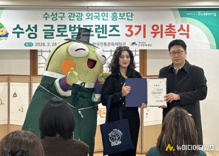 특히 올해는 수성구 대표 캐릭터 ‘뚜비’ 서포터즈단 ‘하뚜’ 활동을 연계해, 글로벌프렌즈 11명이 뚜비 온라인 홍보 활동을 병행한다. 이들은 올 한 해 뚜비와 함께 수성구 투어, 공연, 축제, 관광지 등을 취재해 글로벌 문화관광도시 수성구를 알릴 예정이다.