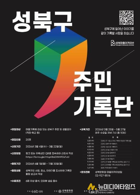 서울 성북구가 성북구 주민기록단 교육생을 모집한다. 성북구는 성북문화원과 함께 성북구의 다양한 모습을 기록하는 성북구 주민기록단을 교육·운영하고 있다.