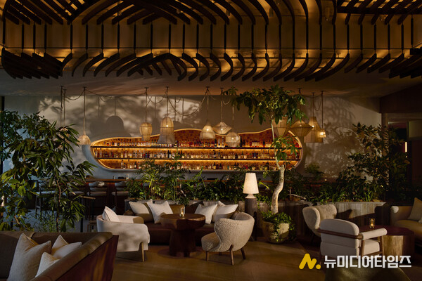 호텔 내부 디자인은 글로벌 건축•디자인 스튜디오 크레메(CRÈME)가 담당했다. 거리에서 시작되는 녹색 벽은 도시의 활기에서 벗어나 자연으로 전환되는 순간을 상징한다. 투숙객은 건물 내부를 올라가며 마치 나무 줄기를 따라 이동하는 듯한 경험을 하고, 38층 로비에 도착하면 울창한 숲 캐노피에 도달한 듯한 공간을 마주하게 된다.