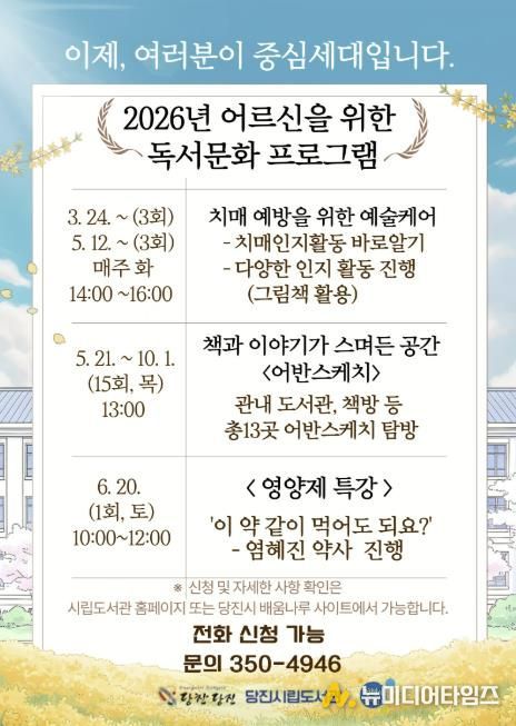 당진시는 어르신들이 책을 매개로 다양한 문화 활동을 경험하며 건강과 삶의 질을 높이기 위해 시립송악도서관에서 어르신 대상 독서문화 프로그램을 운영한다고 10일 밝혔다.
