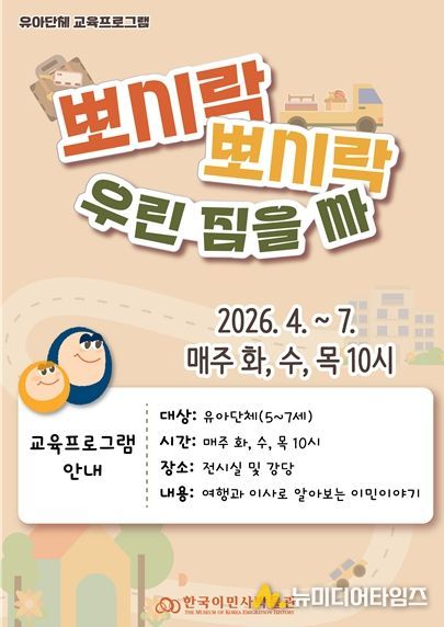 인천광역시 한국이민사박물관은 유아 단체교육 '뽀시락 뽀시락 우린 짐을 싸'를 운영한다고 밝혔다.