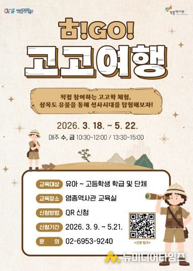 (재)인천중구문화재단(이사장 김정헌)은 영종역사관(인천 중구 구읍로 63) 교육실에서 지역 문화유산을 쉽고 재미있게 배울 수 있는 체험형 교육 프로그램 '고고여행'을 운영한다고 11일 밝혔다.