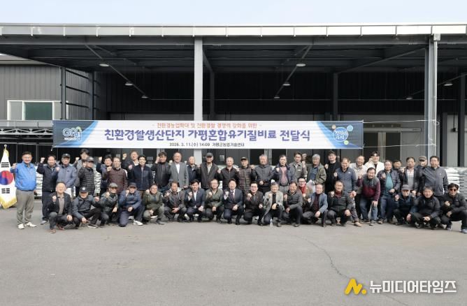가평군농업기술센터는 11일 기술센터 친환경농산물집하장 앞에서 ‘2026년 친환경쌀생산단지 가평혼합유기질비료 전달식’을 가졌다고 밝혔다.