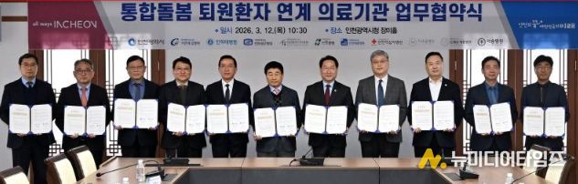 인천광역시는 3월 12일 시청 장미홀에서 상급종합병원 등 관내 10개 의료기관과 함께 '통합돌봄 퇴원환자 지역사회 연계 활성화를 위한 업무협약(MOU)'를 체결했다고 밝혔다,