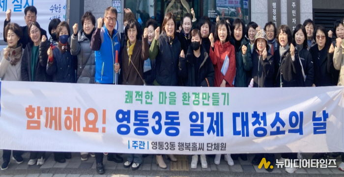 수원시 영통구 영통3동 행정복지센터는 지난 12일 새봄을 맞아 쾌적하고 깨끗한 마을 환경 조성을 위해 통장협의회와 함께 ‘새봄맞이 일제 대청소의 날’을 실시했다.