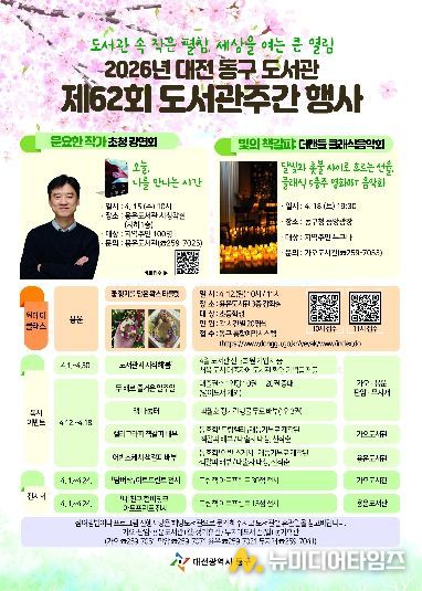 한편, 행사 내용 및 접수 등 자세한 사항은 대전 동구 공공도서관 누리집 공지사항을 통해 확인할 수 있다.