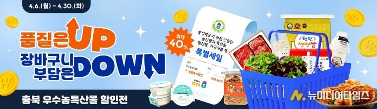 이번 기획전은 충북도가 직접 인증한 농축산물과 가공식품(유제품, 전통식품, 건강식품 등) 130여 개 품목을 대상으로 진행되며, 최대 40% 할인 혜택을 제공한다.