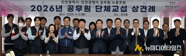 인천광역시는 4월 6일 시청 장미홀에서 인천시공무원노동조합, 전국공무원노동조합 인천지역본부 인천시지부와 ‘2026년도 단체교섭 체결을 위한 상견례’를 개최했다고 밝혔다.
