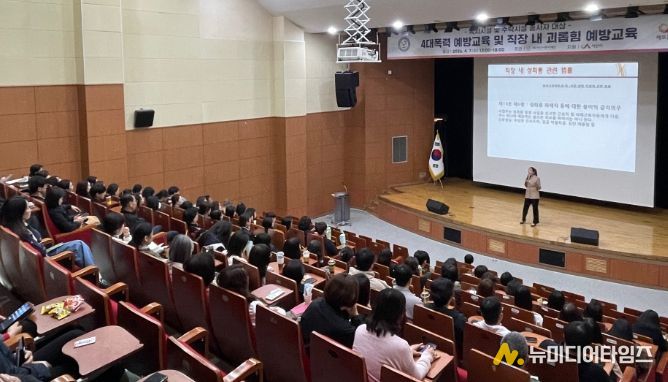 서산시복지재단은 4월 7일 서산문화복지센터 청소년수련관 공연장에서 관내 사회복지 및 보육 종사자를 대상으로 ‘4대폭력 및 직장 내 괴롭힘 예방교육’을 실시했다.