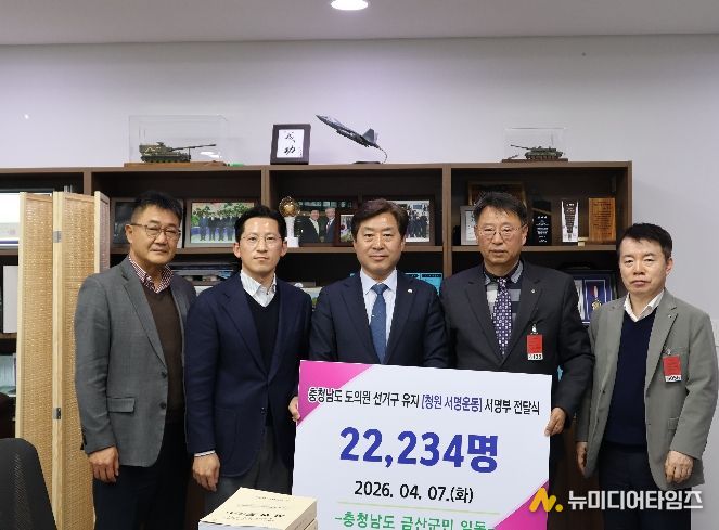 서명부를 전달받은 황명선 국회의원은 “군민의 뜻을 모은 서명부를 정개특위에 전달하고 금산군의 의지를 알려 도의원 정수가 유지될 수 있도록 노력하겠다”고 밝혔다.
