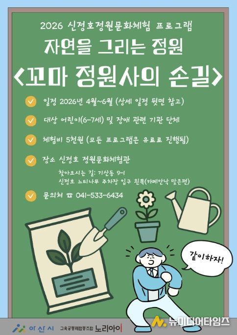 아산시는 오는 4월 13일부터 6월 23일까지 신정호정원에서 상반기 정원문화체험 프로그램을 운영한다고 밝혔다.