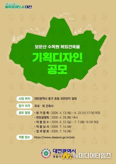 대전시는 보문산의 자연자원을 활용한 산림형 수목원 조성을 위해 ‘보문산수목원 복합건축물 및 기타시설’ 기획디자인 국제 일반공모를 시행한다.